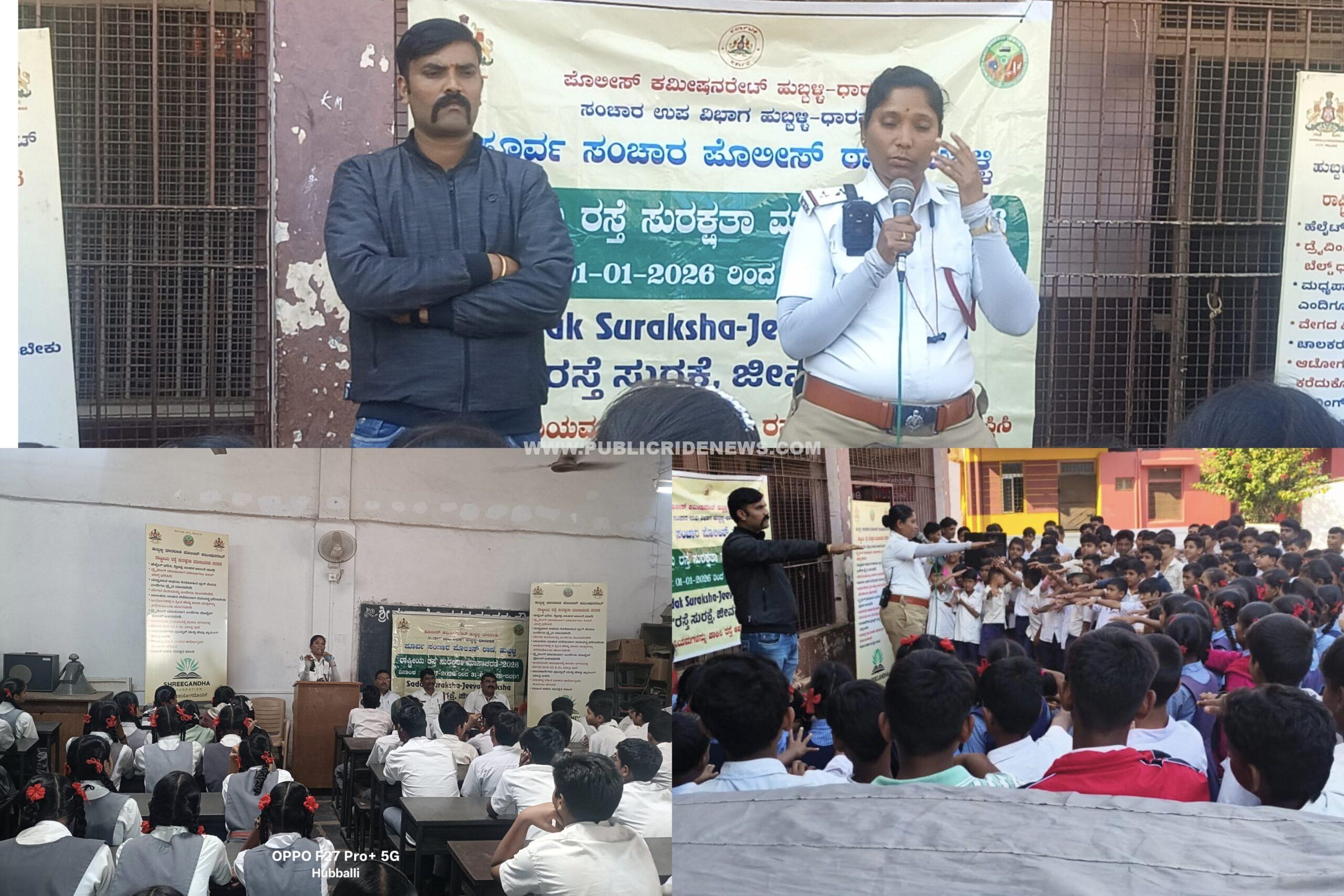 ಹುಬ್ಬಳ್ಳಿ:ಪೂರ್ವ ಸಂಚಾರ ಪೊಲೀಸ್ ಠಾಣಾ ವ್ಯಾಪ್ತಿಯ ಗಣೇಶ್ ವಿಲಾಸ್ ಕ್ರಾಸ್, ಶ್ರೀ ದುರ್ಗಾದೇವಿ ಸ್ಕೂಲ್ ದಾಜಿಬಾನಪೇಟ್ ಮತ್ತು ತಾಡಪತ್ರಿ ಗಲ್ಲಿ ಕ್ರಾಸ್ ಸುತ್ತಮುತ್ತಲಿನ ಪ್ರದೇಶಗಳಲ್ಲಿ ರಾಷ್ಟ್ರೀಯ ರಸ್ತೆ ಸುರಕ್ಷತಾ ಮಾಸಾಚರಣೆಯ ಭಾಗವಾಗಿ ವ್ಯಾಪಕ ಜಾಗೃತಿ ಕಾರ್ಯಕ್ರಮವನ್ನು ಪೊಲೀಸರು ನಡೆಸಿದ್ದಾರೆ.